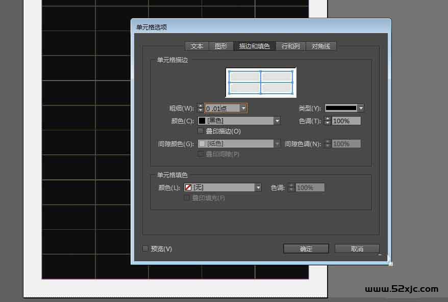 调度描边需重心击外—单位格选项——描边和填色,正在这里咱们筑设描边粗细为0.01,其他参数能够我方拔取,描边颜色也能够调换。