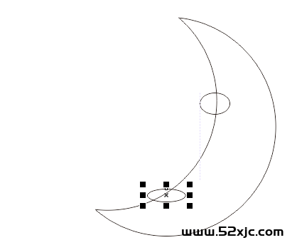先按住Ctrl画一个正圆,再拖动复制出另一个圆,结交成月亮形态。