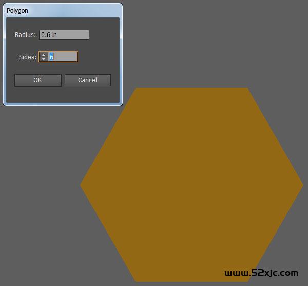 ai顶用众边形器材画一个半径0.6英寸的暗黄色六边形(R=147G=104B=20)。