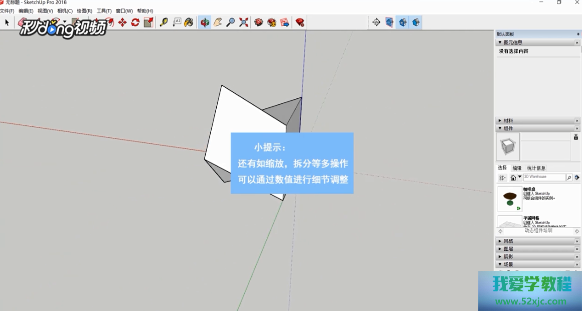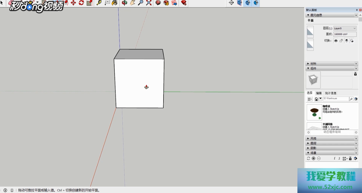 点击器材栏中的推拉器材,正在右下角输入数值原则其高度。