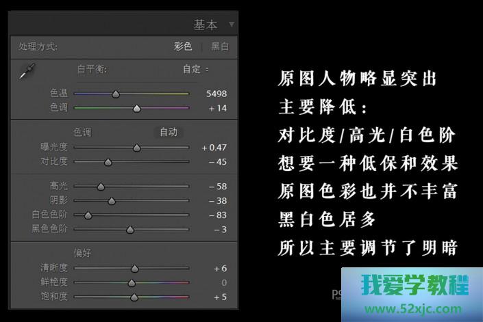 lr这边改动并不是格外大,正在调色之前,最先要昭彰这张图你念到达的恶果。我这里的闭节字是低对照/低饱和,根蒂数值如下: