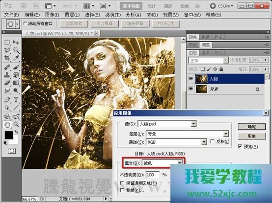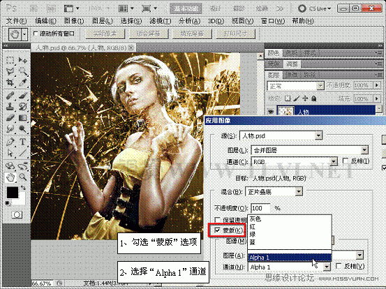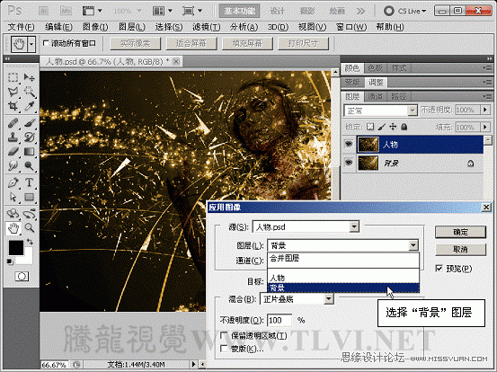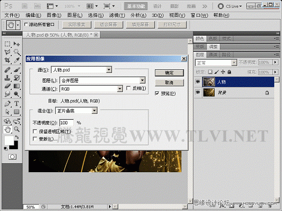 (2)奉行图像→使用图像号召,掀开使用图像对线)正在对话框入选择需求与人物图层相夹杂的图层。