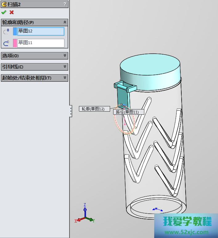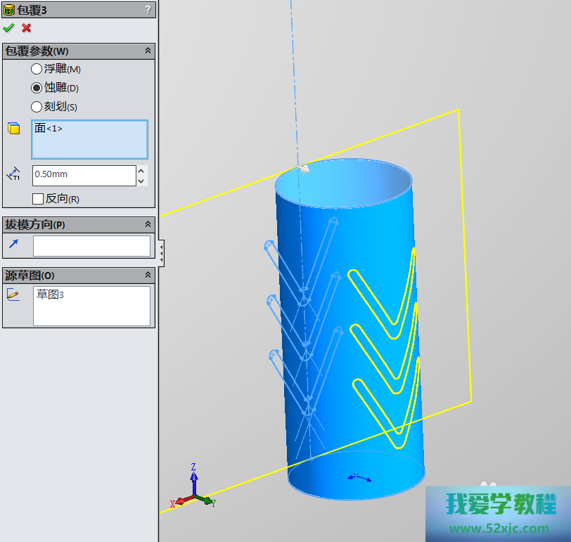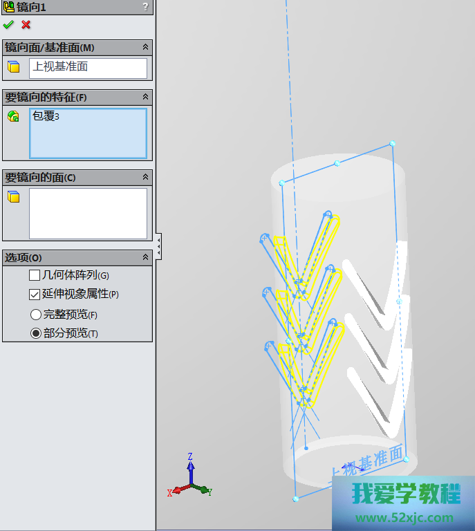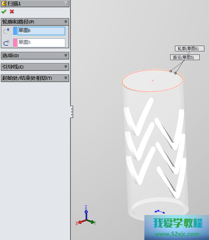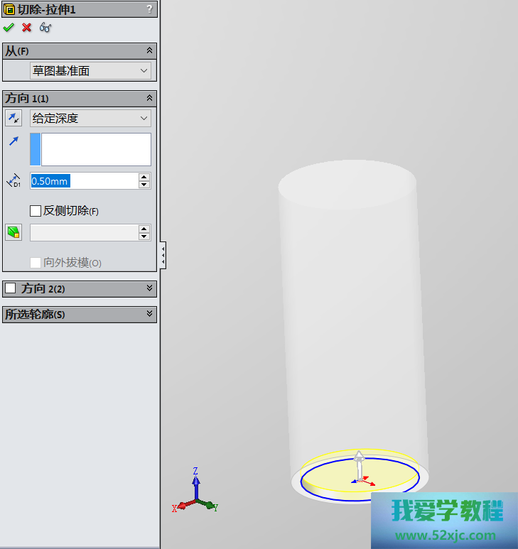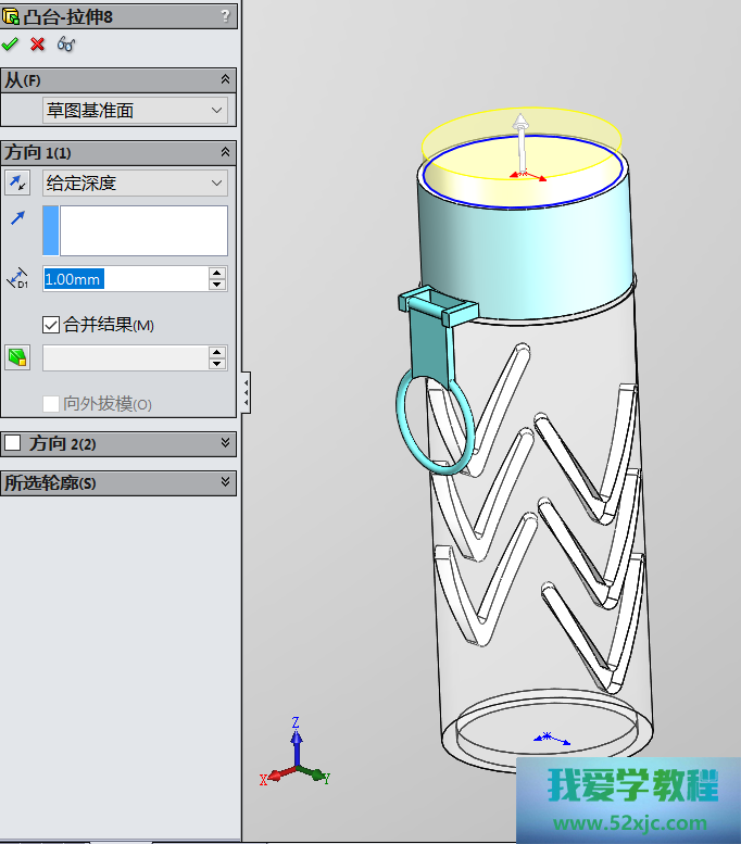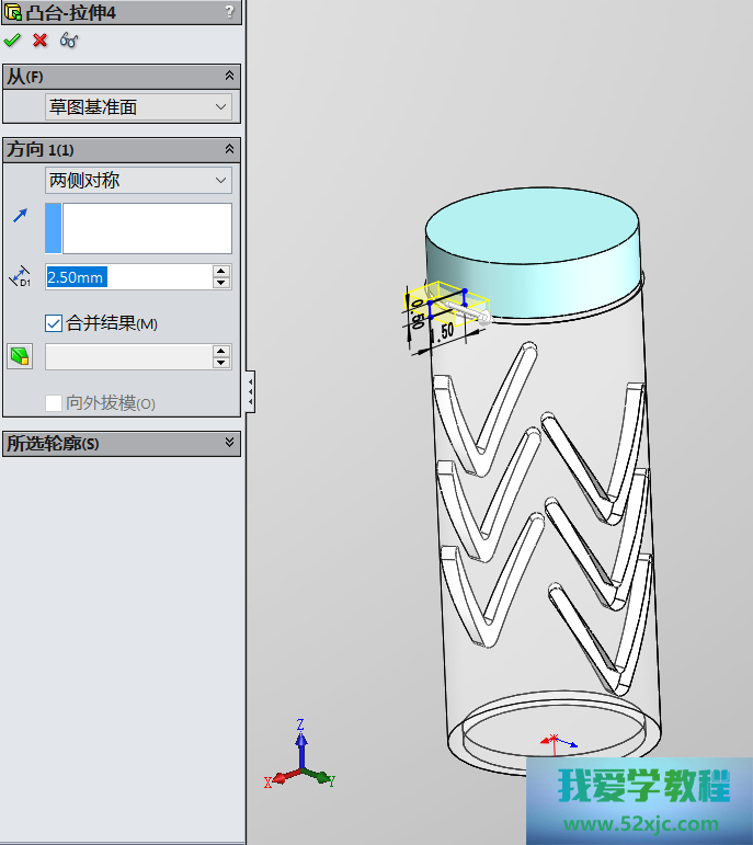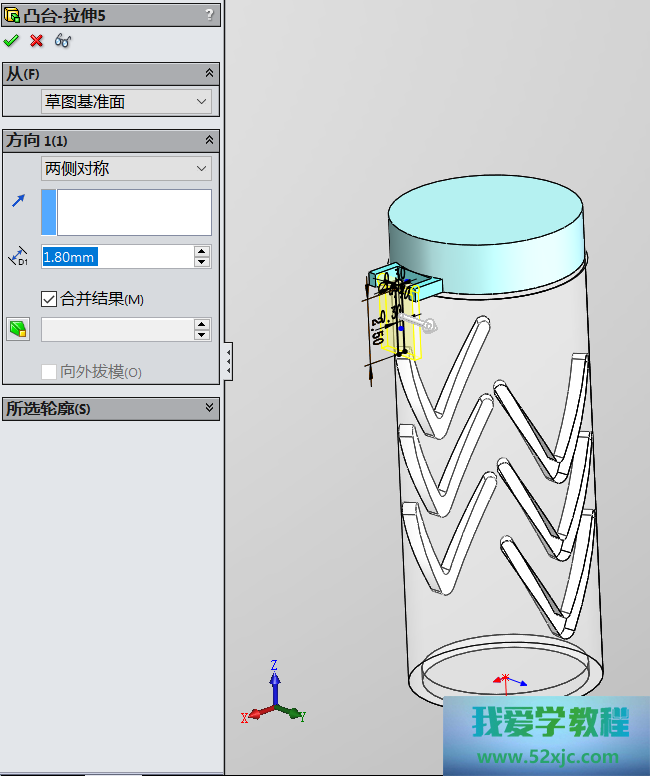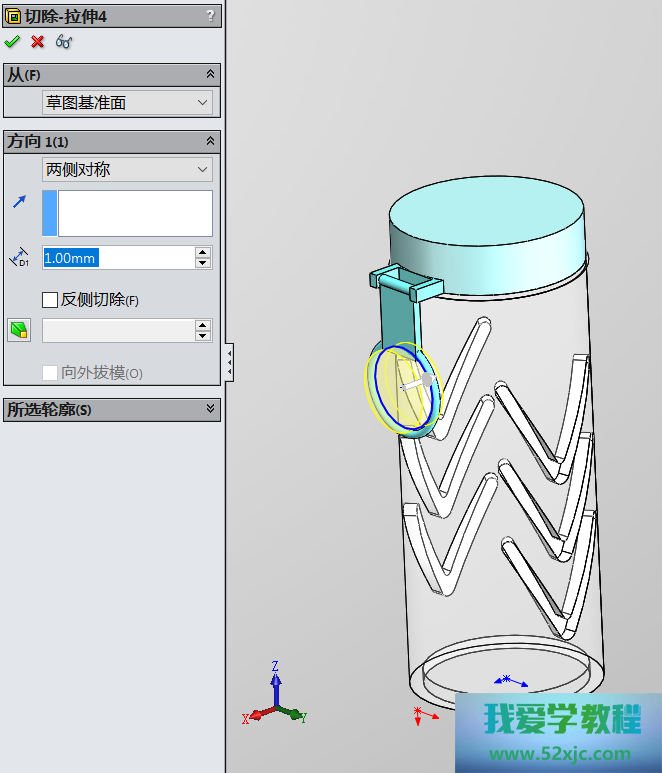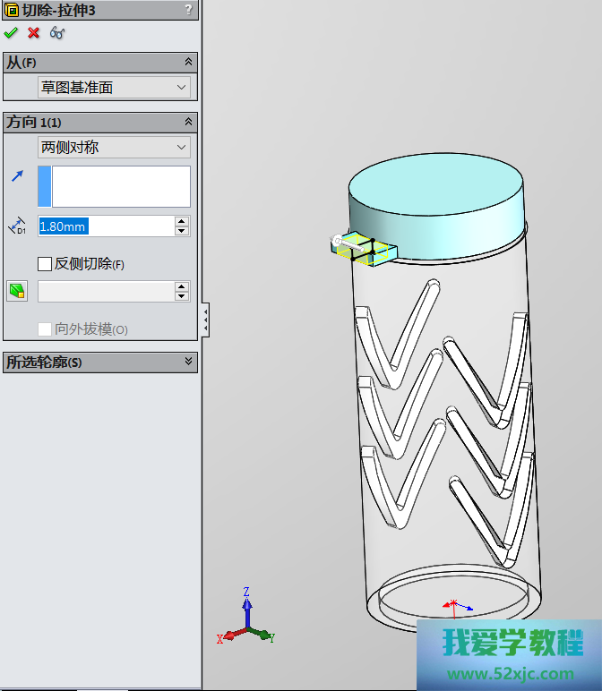 然后操纵切除-拉伸3性能,画出如下图所示的图形: