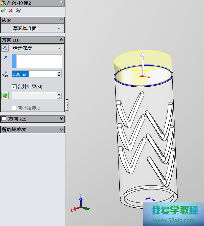 然后操纵凸台-拉伸2性能,画出如下图所示的图形: