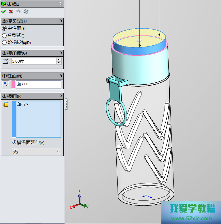 然后操纵拔模1性能,画出如下图所示的图形: