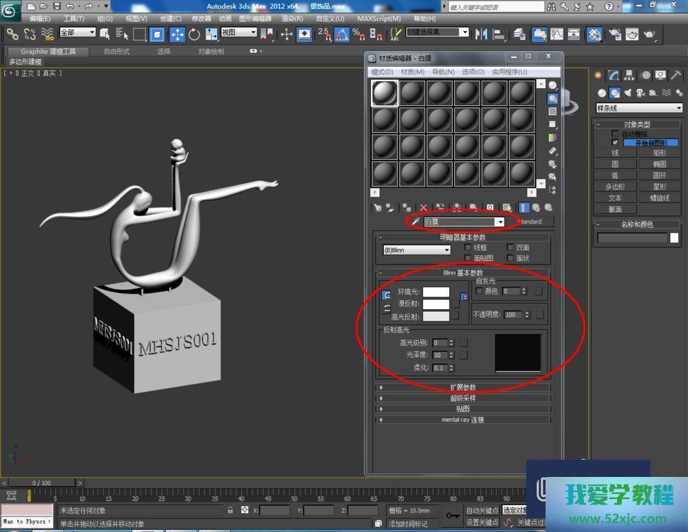 第2步点击【材质编辑器】,弹出材质编辑器修立栏,按图示参数修立一个白色材质球并附加给模子,考核并调理好模子(如图所示);