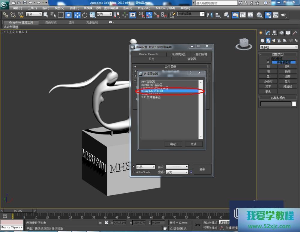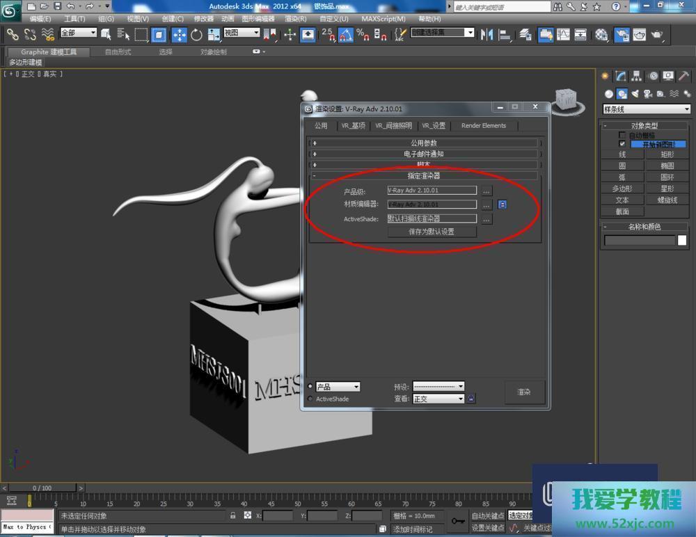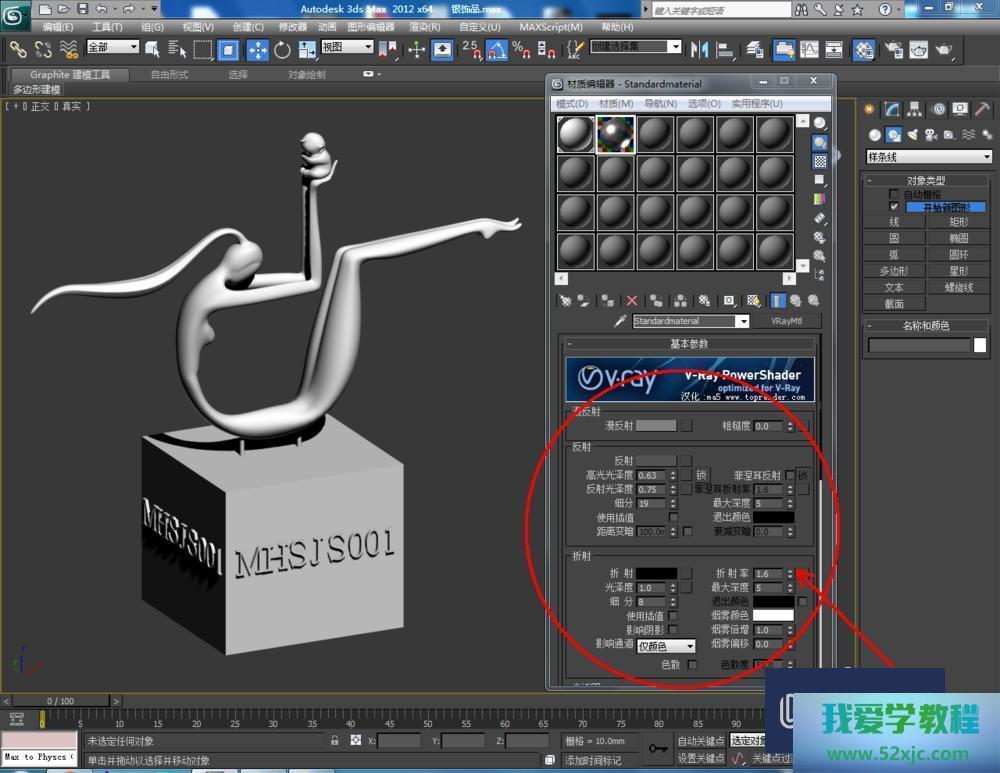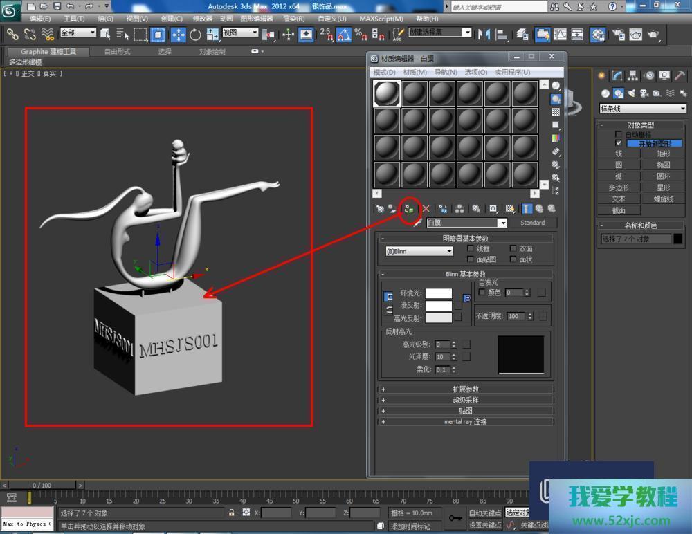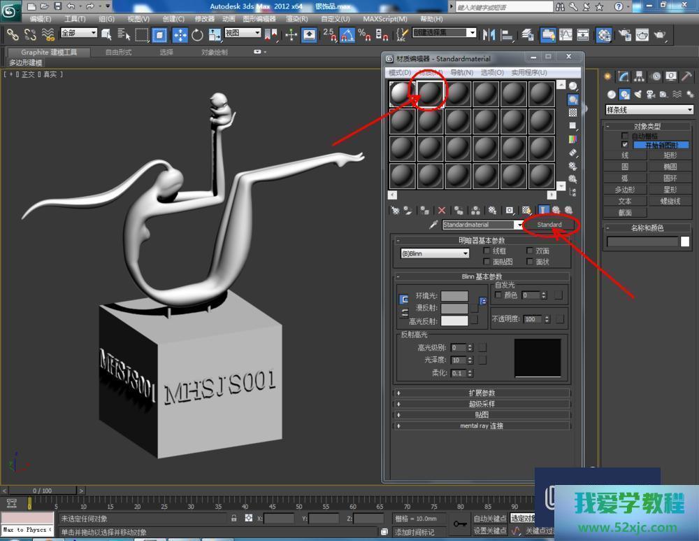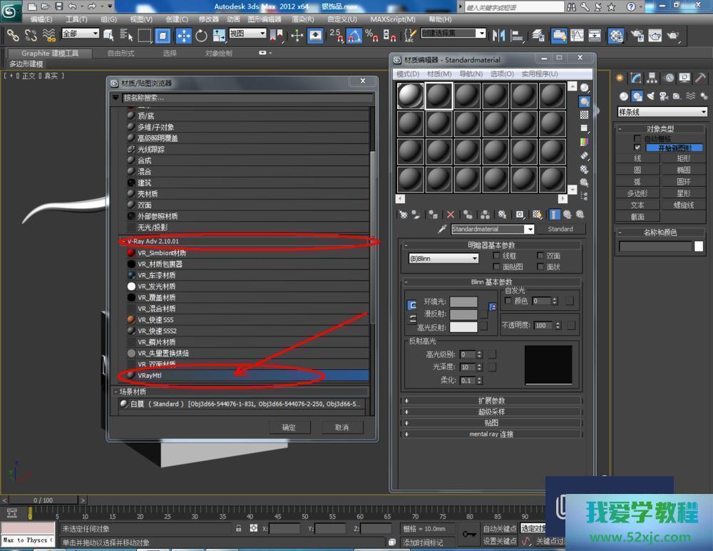 第4步点击【材质编辑器】,弹出材质编辑器修立栏,抉择一个新材质球,点击【standard】-【VRayMlt】,按图示参数修立一个银色材质球并附加给模子(如图所示);