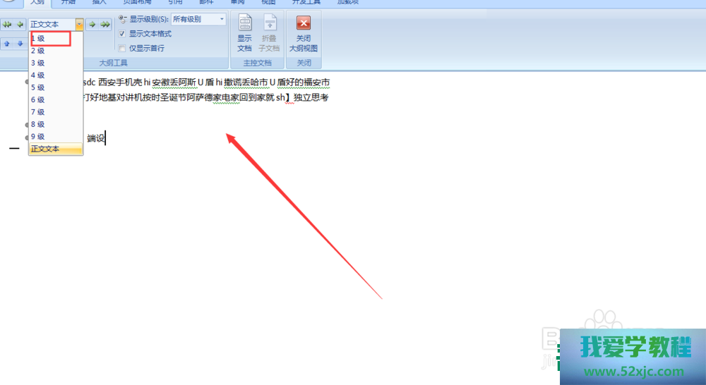 选定要举动二级目次的文字,再遴选“二级目次”,