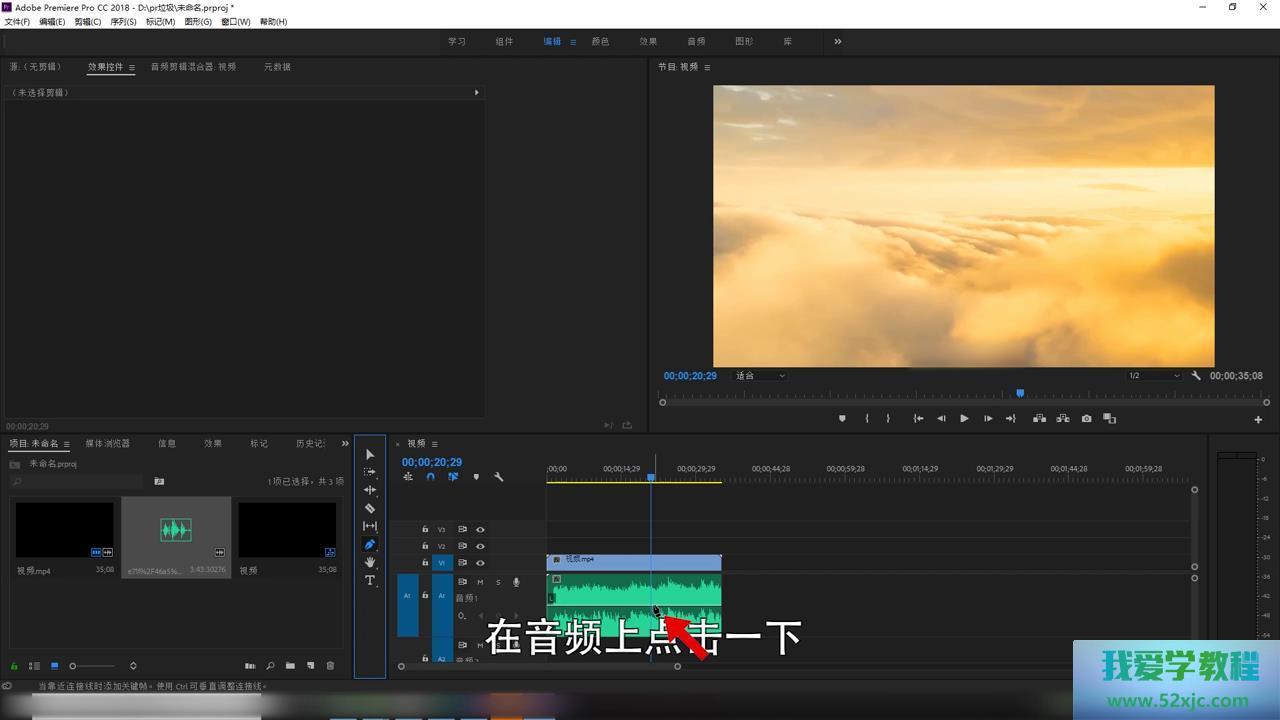 点击“钢笔”器械,正在“音频”上点击一下,把后面的音轨拖到最底部,让音乐有淡出的后果。