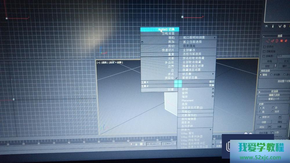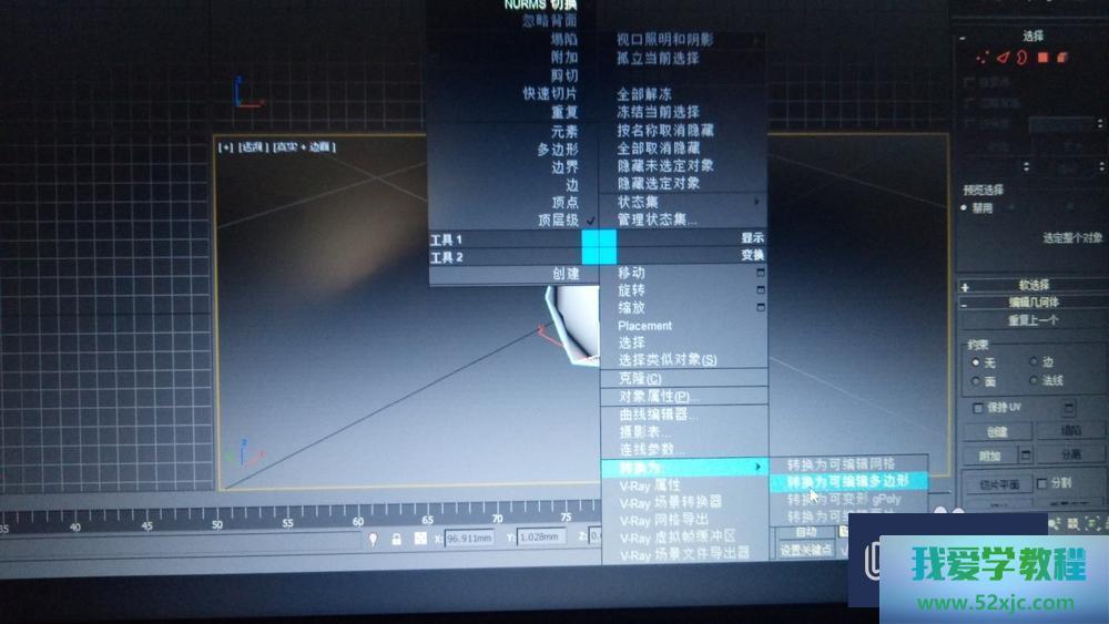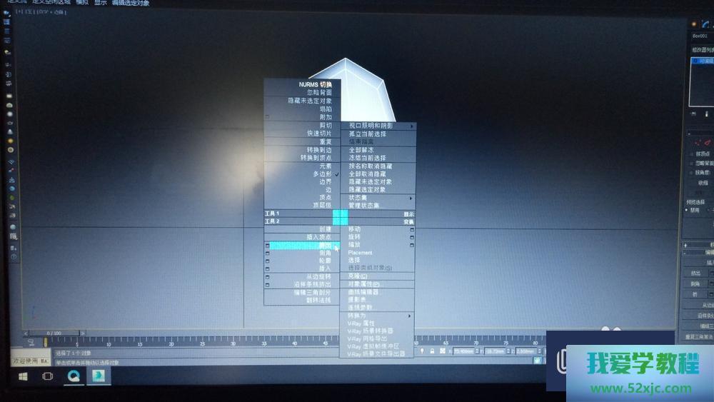 第4步遴选长方体,鼠标右键--转化为可编辑众边形,再次右键--NURMS切换,一连右键--转化为可编辑众边形。