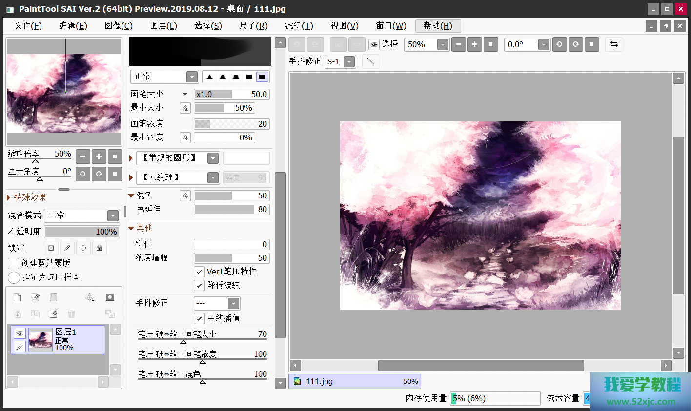 1、起初翻开电脑上的SAI软件,并翻开一张须要柔光功效调度的图片;