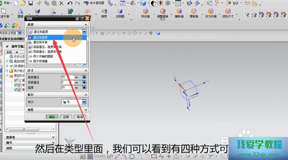 然后正在类型内里咱们可能看到有4种办法可能创修圆锥,咱们拣选第1种,