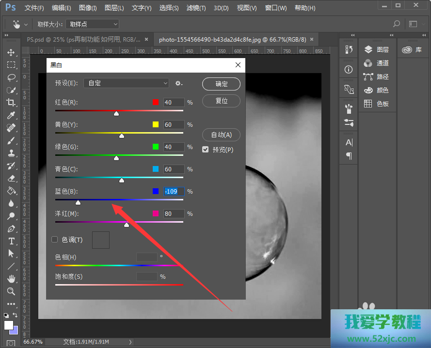 接着咱们将蓝色的数值下降;