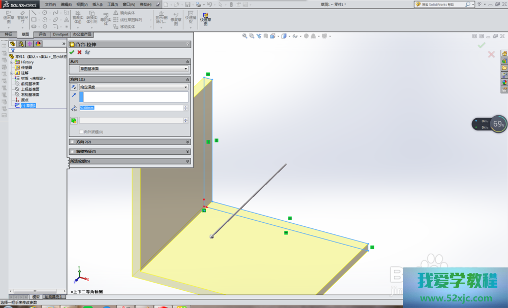 3、拉伸宗旨:笔者拔取的是平行于草图
