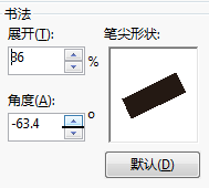 “伸开”选项的取值界限为1—100,100为默认值。省略该选项值,能够使方形笔尖酿成矩形,圆形笔尖酿成卵形,云云书法成果加倍特别。