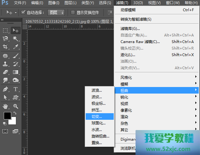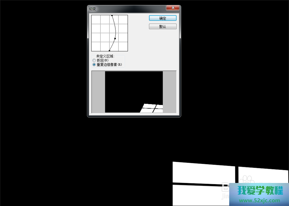 点击:滤镜——扭曲——切变,拣选反复边沿像素,转移上面的锚点调理弧度