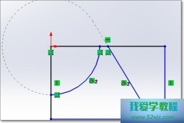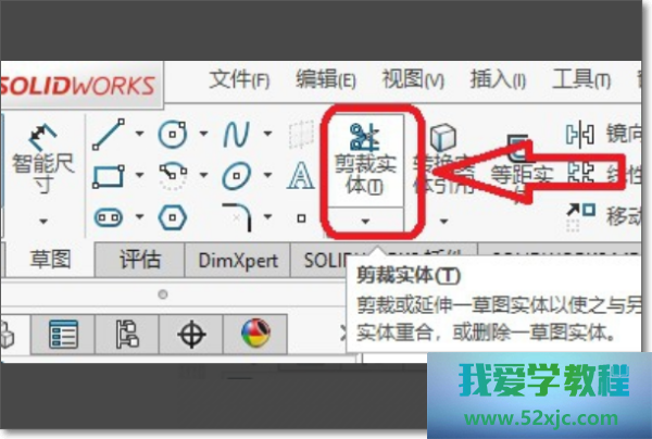 接着,达成上述程序后,倘若必要剪切众余的线段,请单击【草图】中的【裁剪实体】选项,然后将鼠标箭头指向要删除的线段,如下图所示,然晚进入下一步。