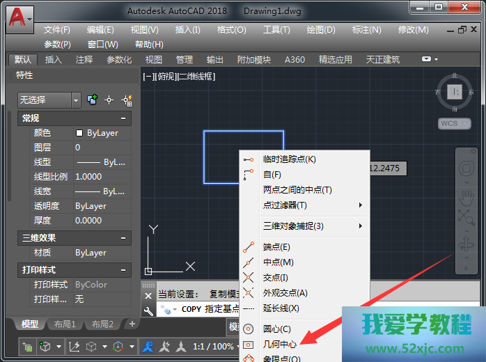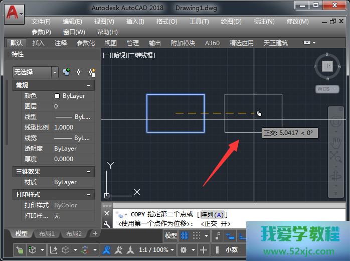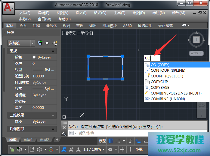 选中矩形,输入敕令CO施行复制。