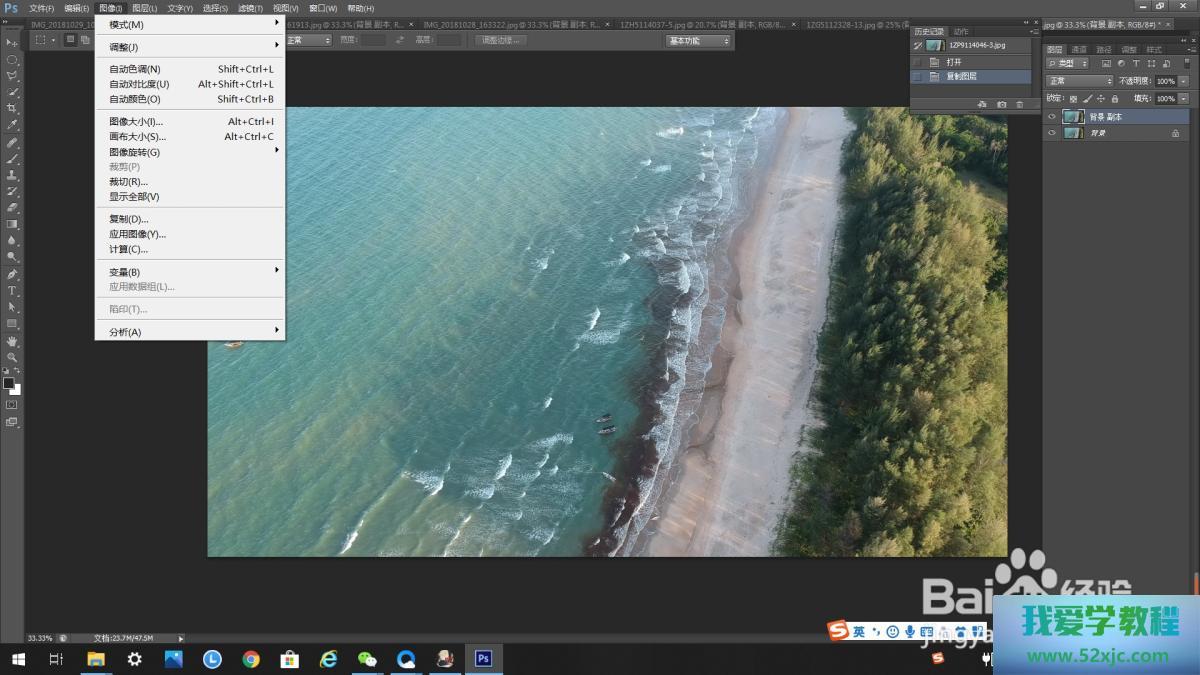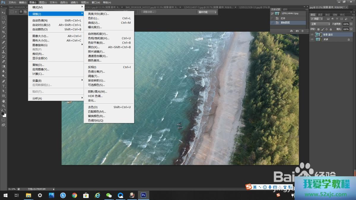 正在弹出的众选栏里采选“调治”,弹出新的众选栏。