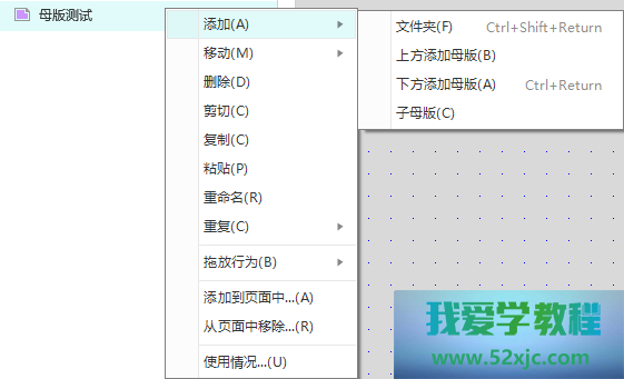 增加 文献夹:新修一个文献夹。 上面增加母版:上方新增一个母版。 下方增加母版:下方新增一个母版。 子母版:新增一个子母版。(本来就作为一个母版行使吧,能够遵守母版嵌套母版的样式清楚,便当后期修削。) 挪动 上移:将母版上移一个地位。 下移:将母版下移一个地位。 降级:将母版降级位某个母版的子母版。 升级:将子母版升级为母版。 删除、剪切、复制、粘贴、重定名 惯例的功效 反复 母版:反复复制天生眼前选中的母版。 分支:反复复制天生眼前选中的母版以及母版的子母版。 拖放举动 随便地位:能够将母版拖放到页面中任何地位。 固定地位:母版的地位是固定的,固定坐标取决于母版的实质地位。 离开母版:拖动的母版,正在页面中不正在相合眼前的母版。(这里即是能够清楚为此时的母版为元件库中的一个元件,能够随便拖放和改动) 注:母版的效力正在于疾速修削相合母版。随便地位、固定地位。能够知足母版的相合修削。离开母版后,就不行直接相合修削。 增加到页面中 将母版增加到某个页面。(疾速的实行母版的行使,比如:后台管制体例中的外格翻页,需求众次手动增加,此时就能够实行设定固定地位,然后实行增加到页面中操作。) 正在页面中移除 将母版从页面中移除。(正在有的时刻做原型中,某个复用的个别需求疾速跟换,而且有新的样式,此时就能够实行移除。) 查看行使情形 能够查看眼前母版正在阿谁界面行使。 页面中的母版选中右键。