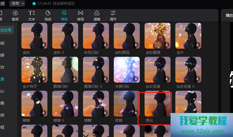 然后能够预览到黑化殊效
