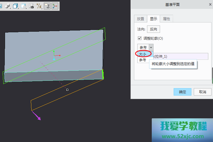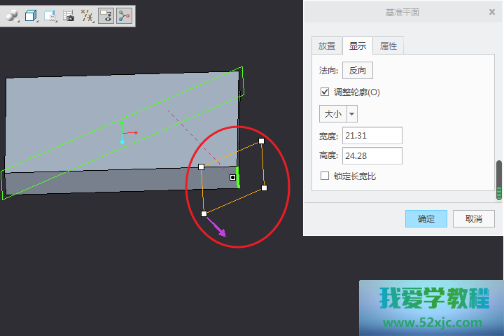 正在画图区,搬动基准平面四角的调动职掌滑块,即可调动其轮廓。