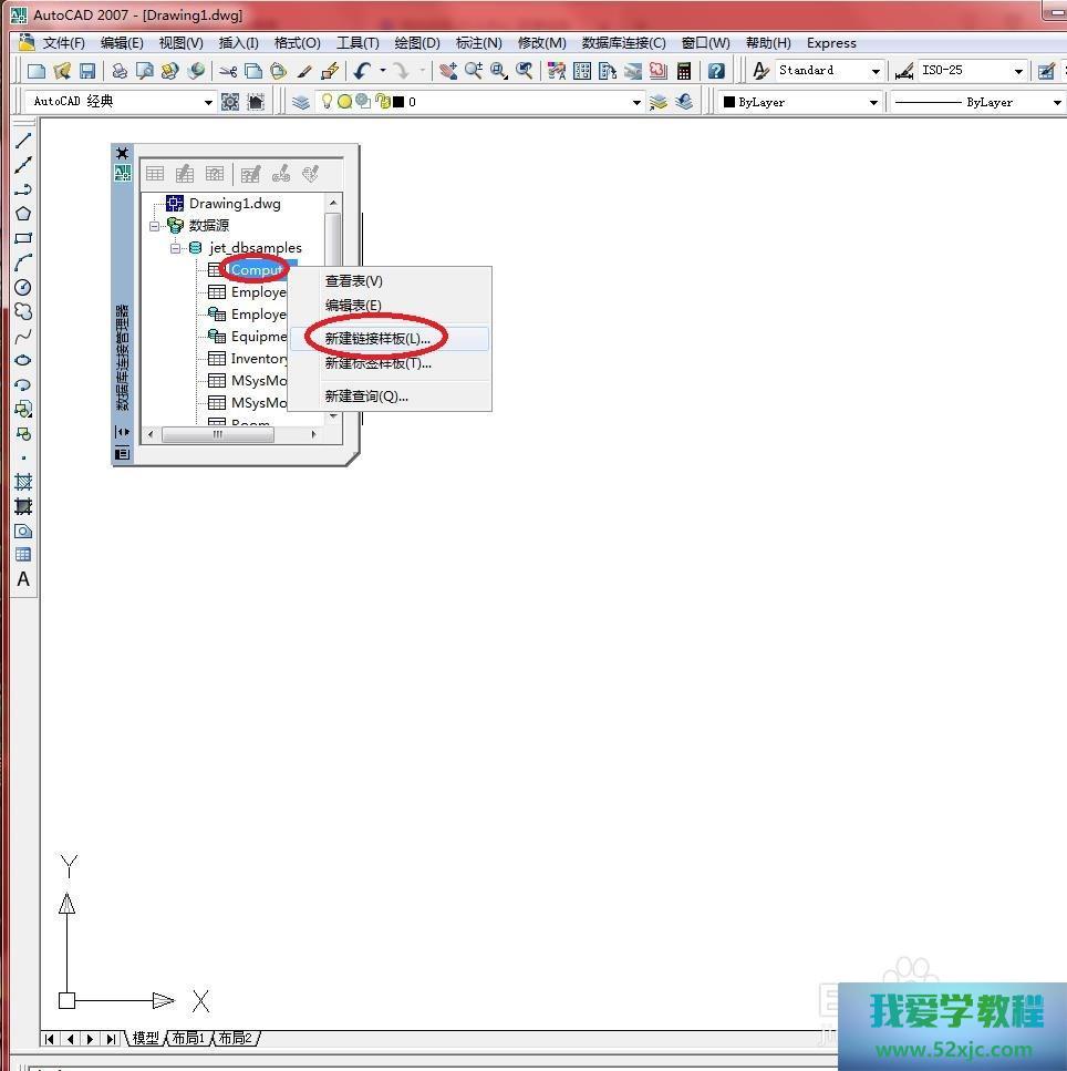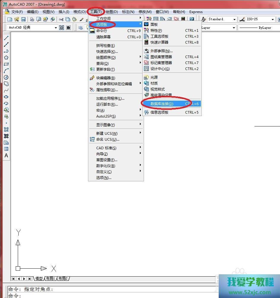 采用【东西】/【选项板】/【数据库邻接】菜单号令,如下图所示