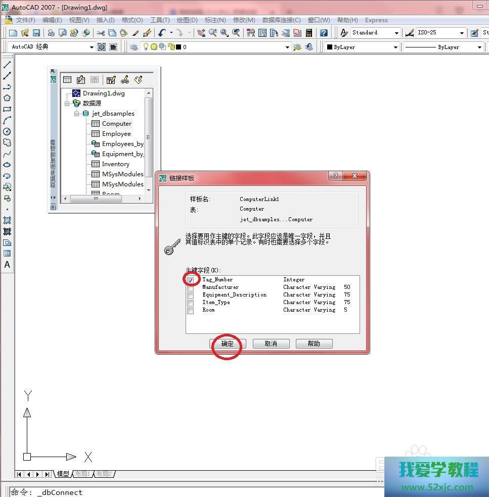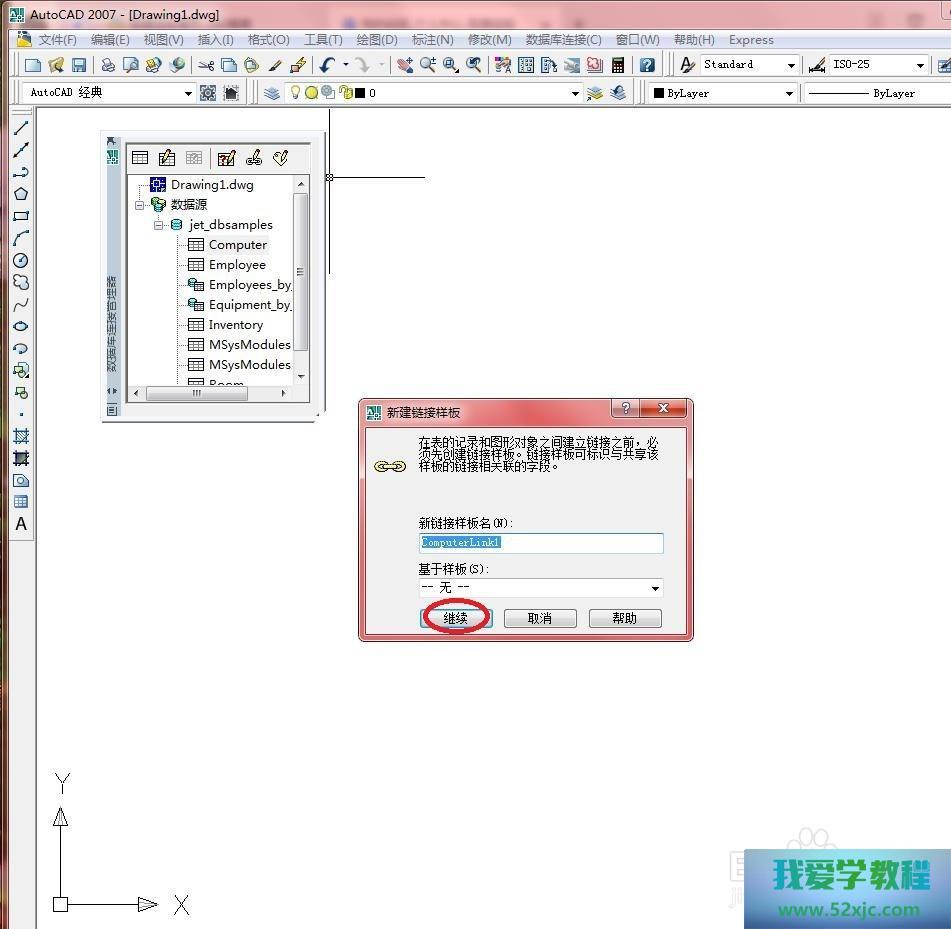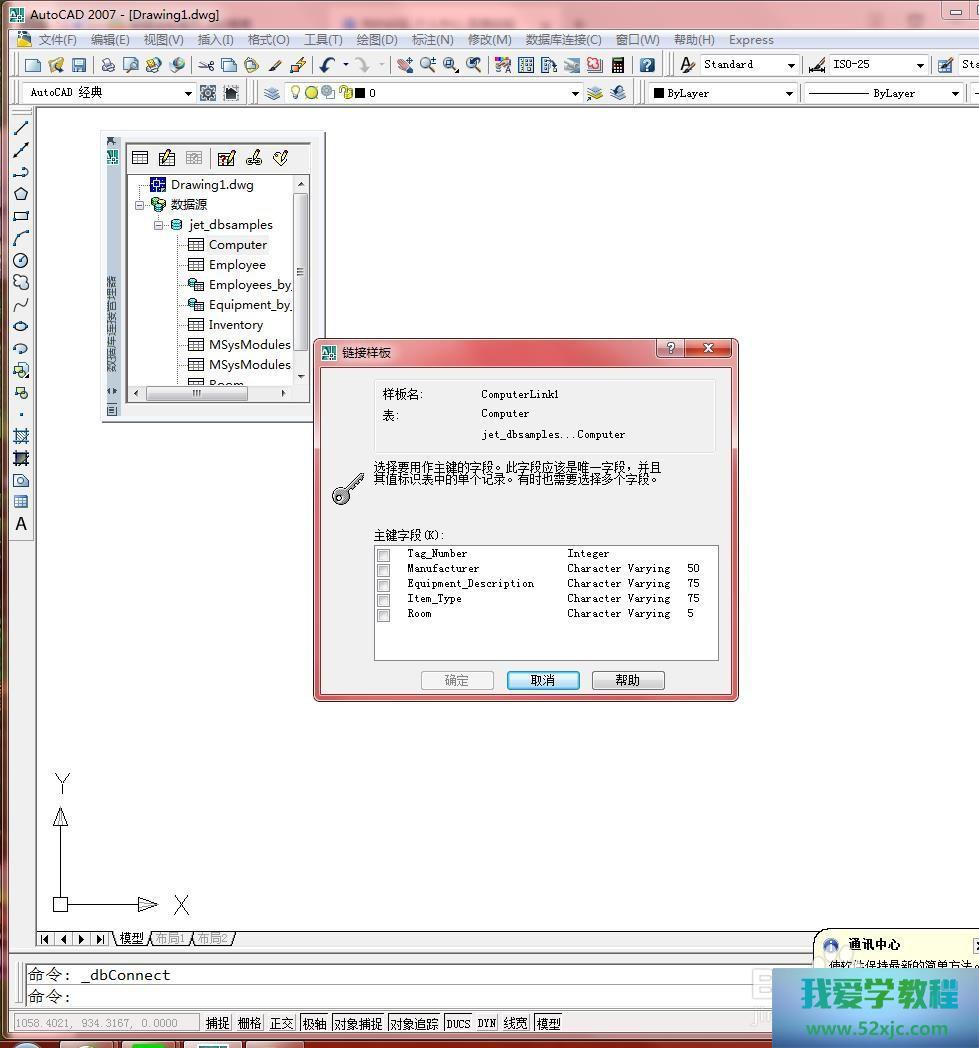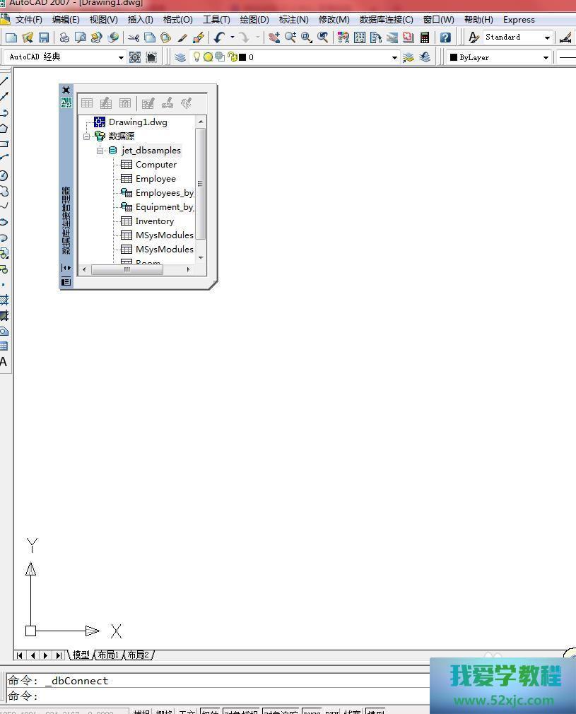 弹出【数据库邻接收拾器】选项板,如下图所示