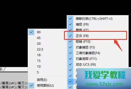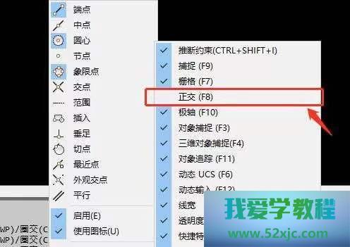进入CAD,鼠标右键点击下方其他性能的图标,右击对象搜捕,跳出页面,遴选显示。