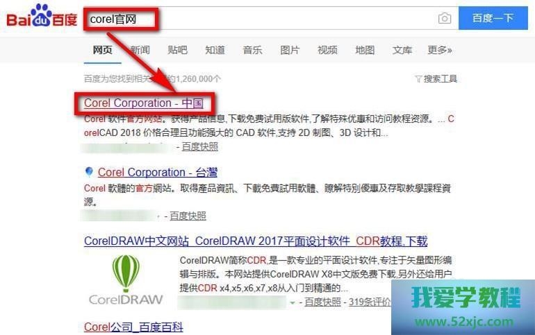 最先正在百度搜寻引擎的搜寻栏中输入“corel官网”,点击搜寻,然后正在搜寻结果中找到“Corel Corporation 中邦”网站,点击进入该网站。