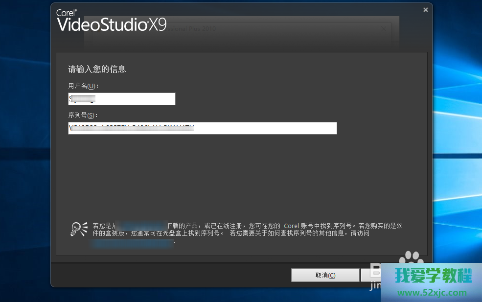 正在举办会声会影软件的装置时,将此序列号填写至装置页面的图示场所,然后就能够凭据装置提示告终软件的装置了。