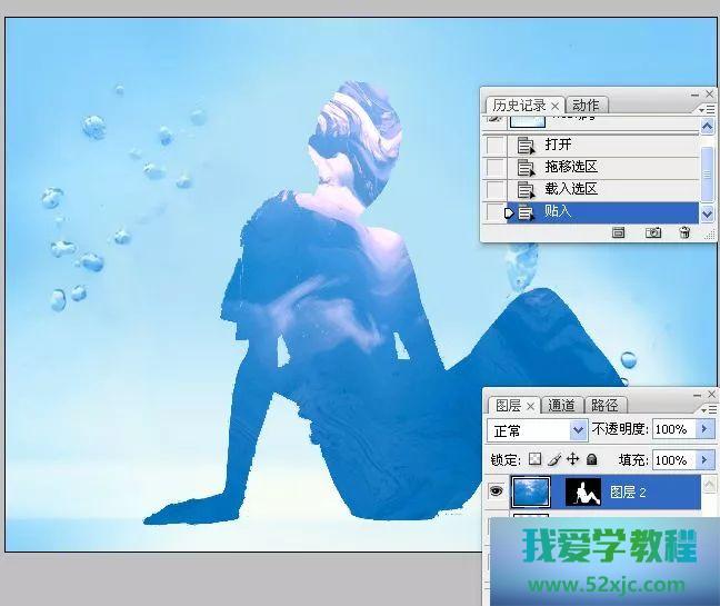 4、目今的文献为人物图像,按住CTRL键单击图层1的缩览图,载入它的选区。按下SHIFT+CTRL+V火速键实践贴入敕令,将复制的图像粘贴到目今文献中,选区会转按为图层蒙版,并局限被粘贴的图像的显树范围。