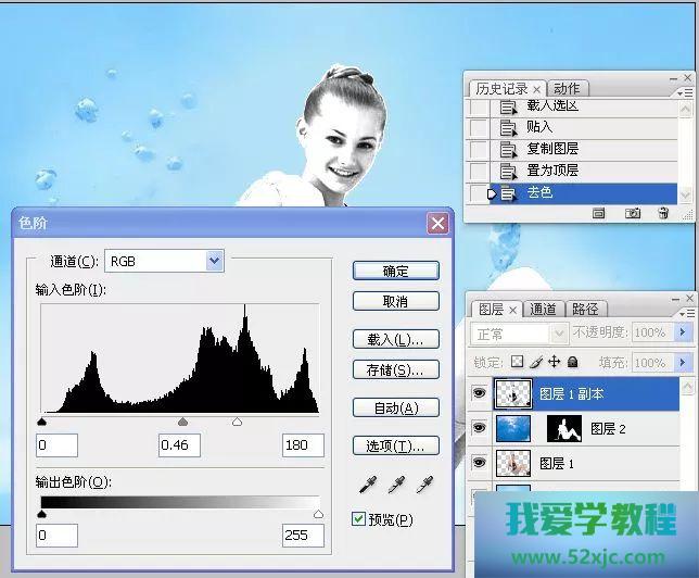 6、实践去色敕令,按下CTRL+L火速键,实践色阶敕令,添加图像的比拟度。