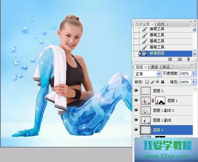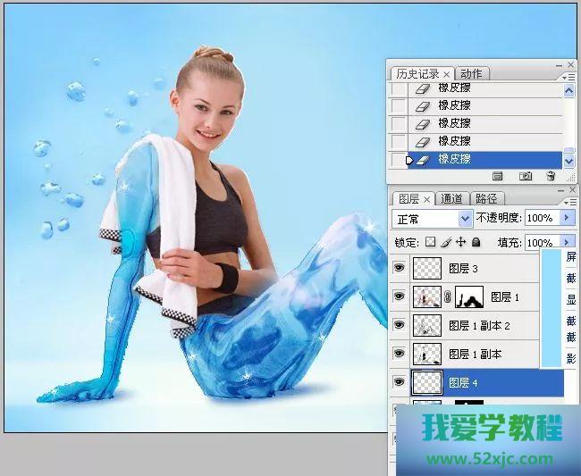 12、图层1继续位于调板的下方,被其它图层笼罩,没有真正施展功用,而咱们之以是保存该图层,是为了让它正在最终的操作中起到画龙点晴的功用。采用图层1,将其移至顶层。采用橡皮擦东西,对人物右臂和腿部举办擦除,擦除的区域会显示出下面图层中冰雕效益的图像。
