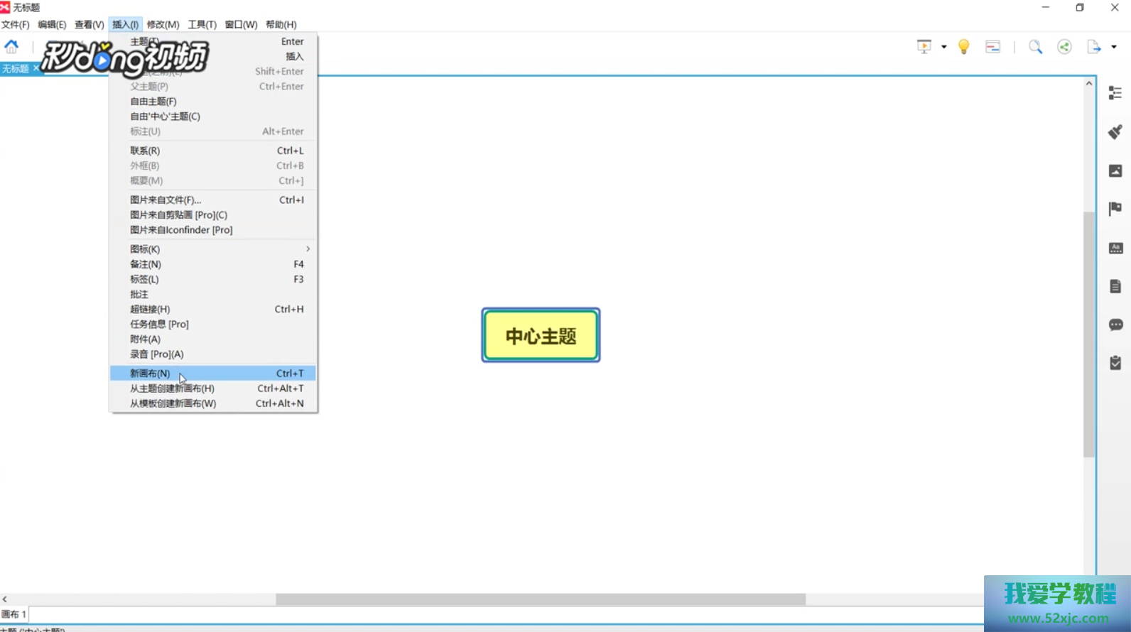 点击左上角的插入选项,鄙人拉菜单落选择新画布即可。