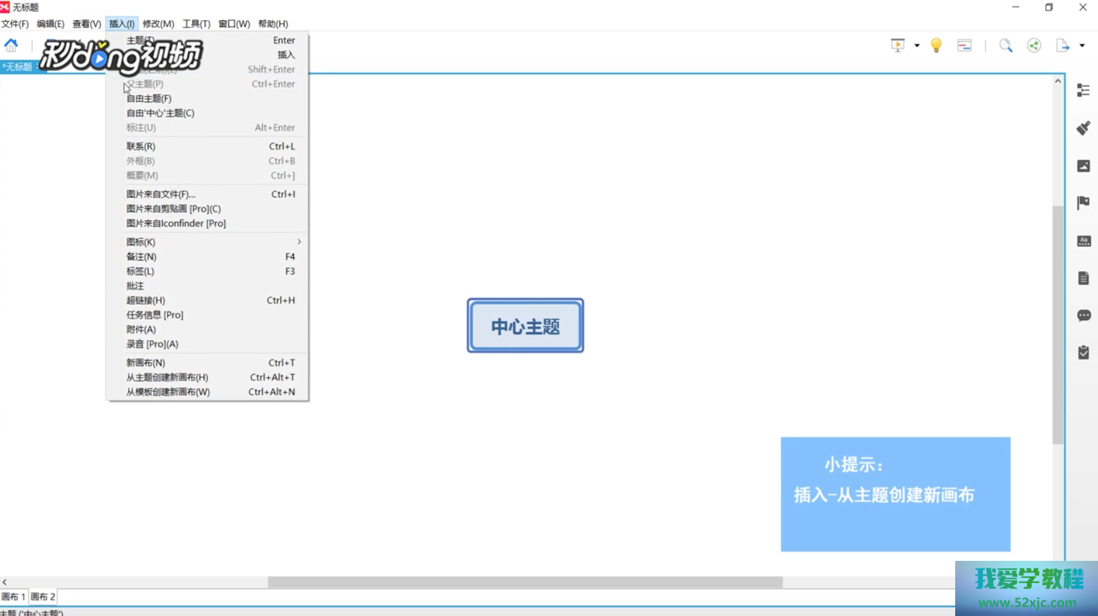 假使思从主旨插入新画布,点击左上方插入选项,鄙人拉菜单落选择从主旨创筑新画布即可。