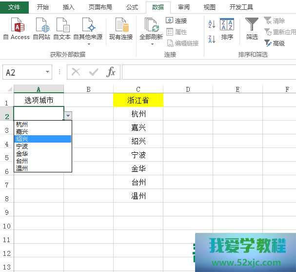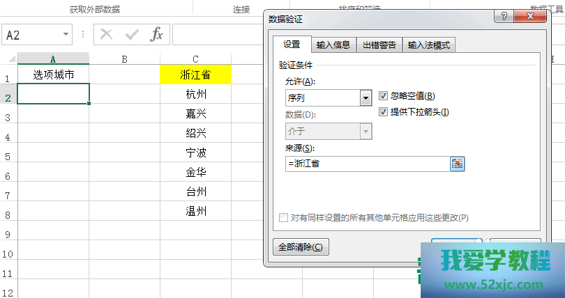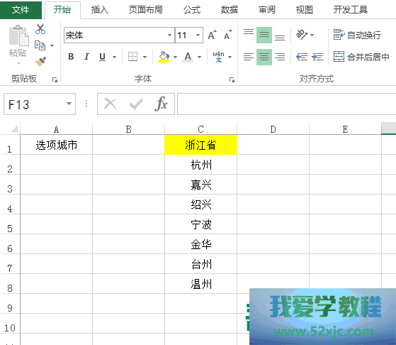 如图为原始数据区域,须要将省份对应的都会做成下拉菜单。