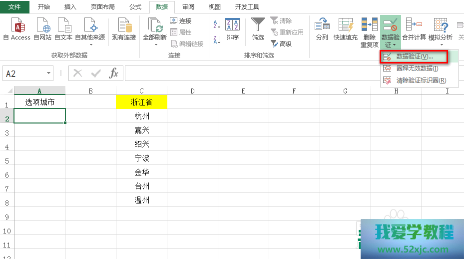 然后正在“数据”选项卡下点击“数据验证”,并点击“数据验证”,完全如图所示: