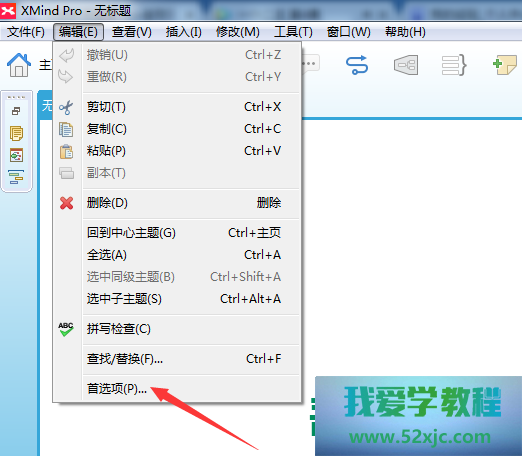 举办掀开一个xmind的软件的界面中,举办点击菜单中“编辑”的选项。
