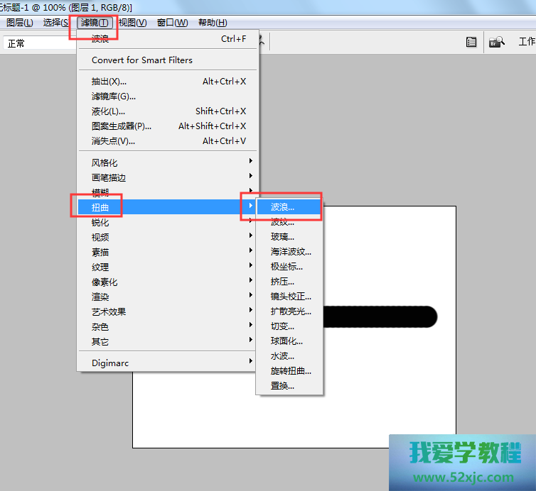 点击滤镜,扭曲,海浪。