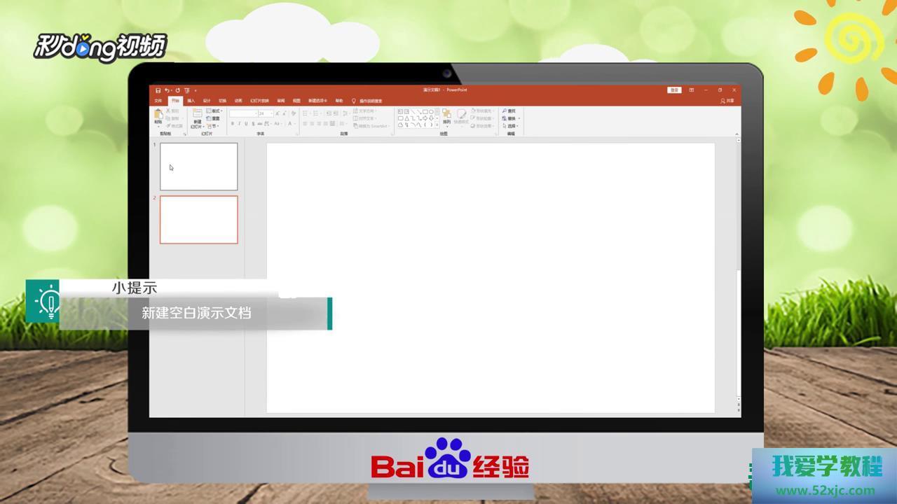 翻开PPT,新筑一个空缺演示文档,点击左上角的一个“文献选项菜单”。