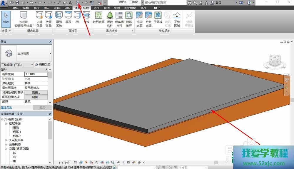 开发地坪最好正在开发场合中,如此就能够更好的显示开发地坪和原场合之间的干系,正在体量和场合选项卡中点击开发地坪。