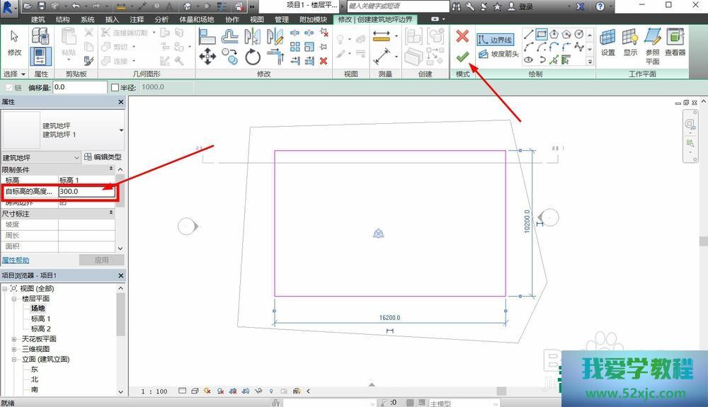 竣工开发地坪绘制后,点击对勾即可天生开发地坪,体例也会主动选中地坪,咱们能够正在属性中对地坪实行二次修削。
