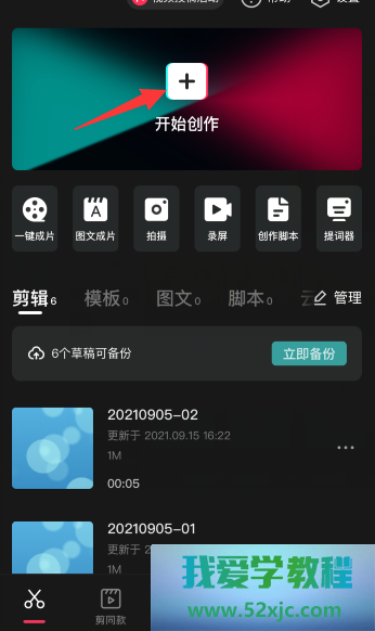 剪映中,点击“入手创作”
