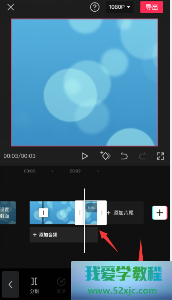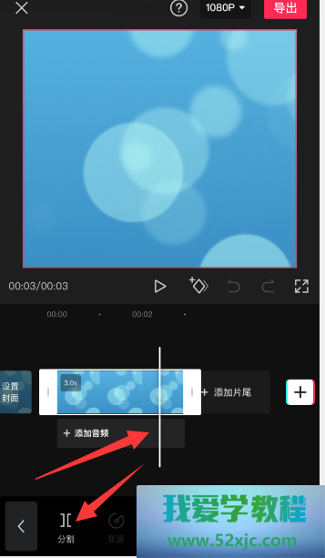 将长竖线挪动到必要剪掉的区域上,点击“朋分”就可能朋分视频