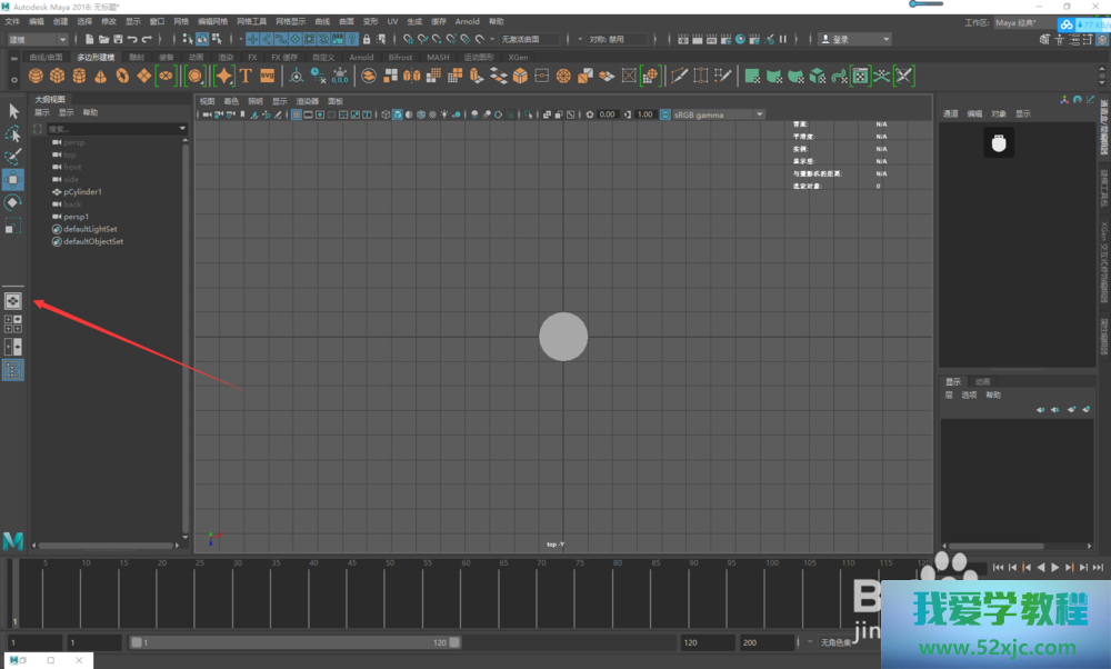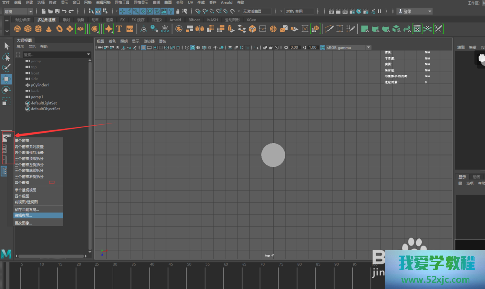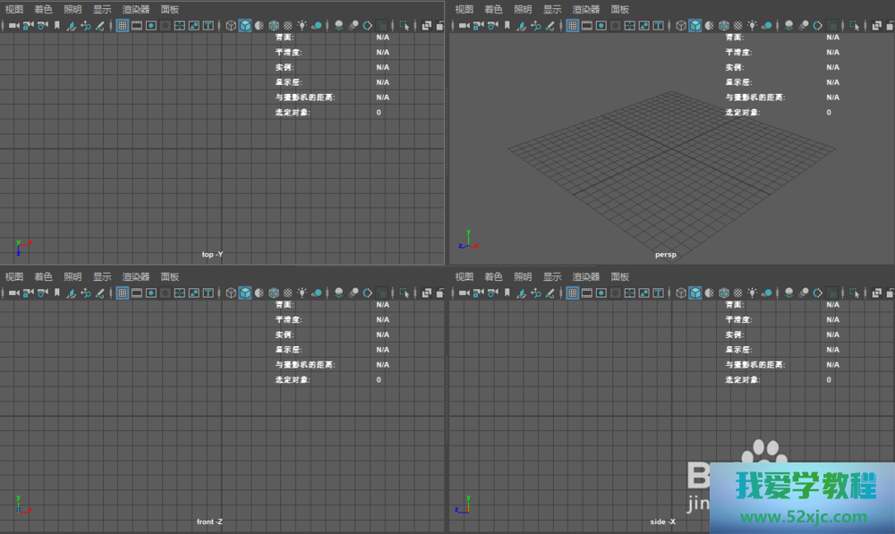 默认咱们掀开maya是四视图的形式,采用需求的视图,点击“空格+w”最大化视图。