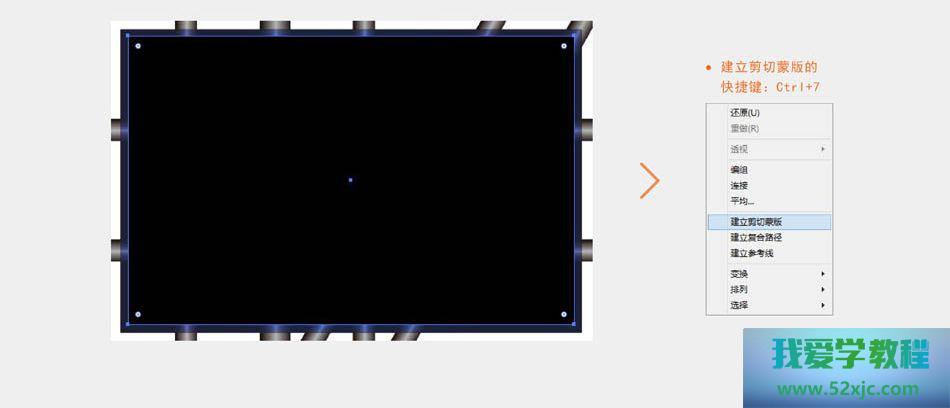 5.用矩形用具正在最上面做一个矩形,然后全选设立剪切蒙版。