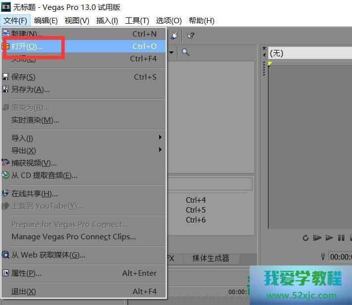 1、起初运转vegas软件,点击文献按钮,如图。