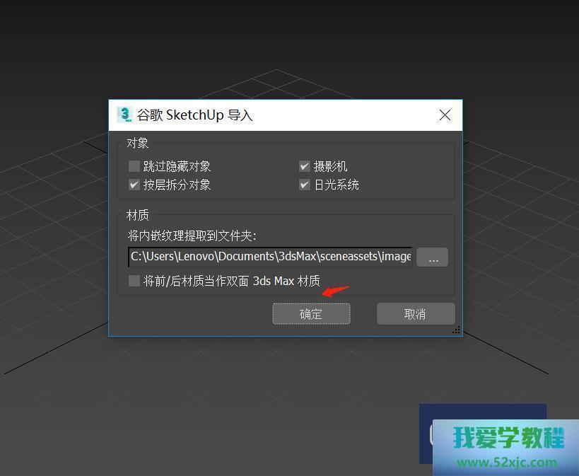 第6步弹出谷歌SketchUp导入弹出框,点击确定