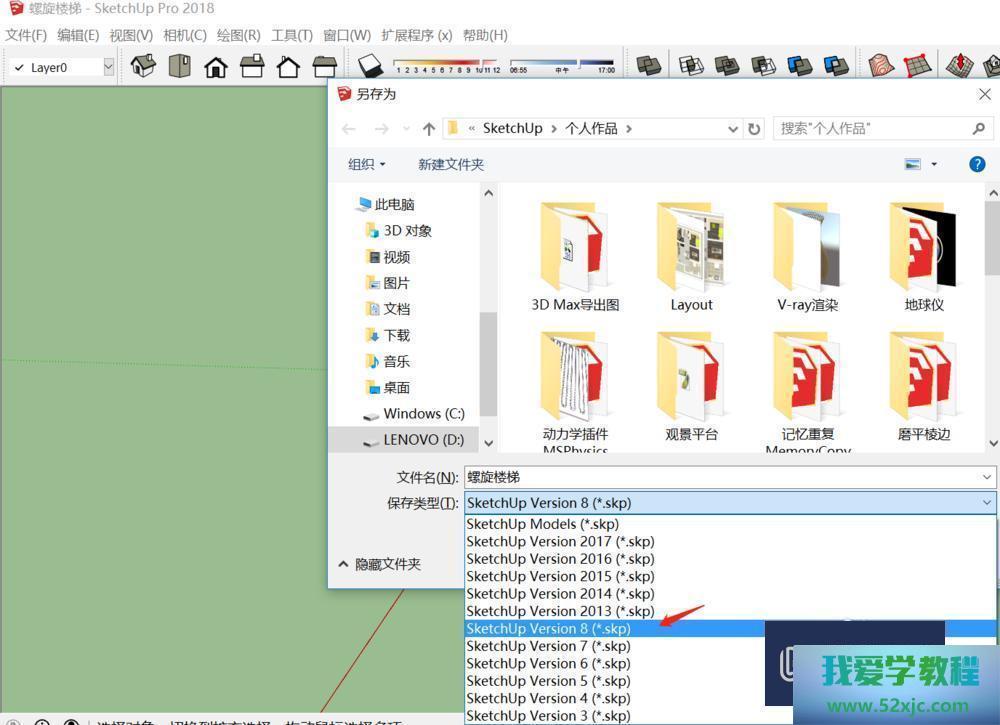 第2步起首应用SketchUp 2018翻开你所创筑的模子,将其另存为SketchupVersion 8及以下版本